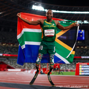 Ntando Mahlangu: A star South African Paralympic athlete who won gold medals in men’s long jump T63 and men’s 200m T61 events at the 2020 Summer Paralympics in Tokyo, Japan. At just age 14, he won the silver medal in the men’s 200m T42 event at the Rio de Janeiro Summer Paralympics in 2016. Ntando born with fibular hemi-melia: a condition that affected both legs from knee down, spent most of his earlier life in a wheelchair. In 2012, when he was 10-years old, a decision was made to amputate both his legs through the knee. Ntando aims to inspire more children to dream big and go for their goals, despite the challenges, by being a good example of what is possible with access to prosthetics, education, and sport.
