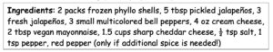 Are you yearning for a quick, warm, crispy, delicious snack? Here’s a fan favorite snack that also causes minimal mess: perfect for parties, rainy days, or just because J For the shells used to make these poppers, we used Athens brand phyllo dough: it’s dairy-free and egg-free. You can make the shells by hand too!
