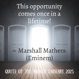 says, each opportunity comes but once in a lifetime. That’s not to say doors stay closed- it’s also possible to seek and create opportunity. My goal this year will be to do more things and see more places. I wish you opportunity in 2025!