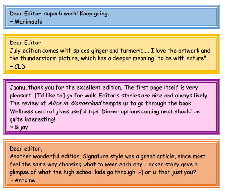 Letters to the Editor – Aug 2020 by Ranjana (Jaanu) Ramesh August 15, 2020 Ranjana (Jaanu) Ramesh Letters to the Editor for July 2020 – Thank you all !! Related