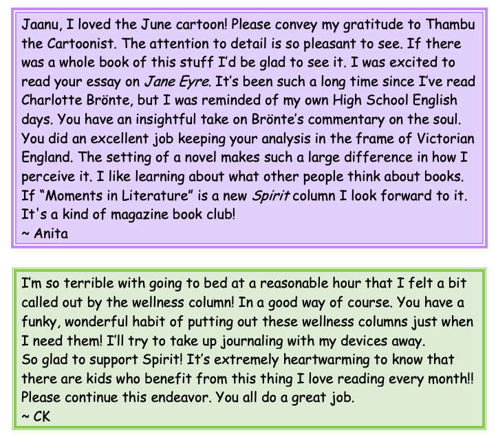 Letters to the Editor – July 2022 by Ranjana (Jaanu) Ramesh July 15, 2022 Ranjana (Jaanu) Ramesh Letters to the Editor – Spirit Review for June 2022 Related