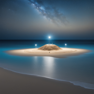 The only waves came from the ripples he had created when he landed. Toby looked up and saw the sky covered in stars. He scanned the horizon and saw some sort of island not too far away. It was illuminated by floodlights. Toby swam to it and crawled up onto the beach. It was covered with children milling about. As he was about to ask one of them what was going on, a loud trumpet sounded, and an old woman walked onto a stage at one end of the beach.