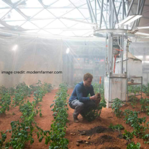 In The Martian, Matt Damon plants and grows potatoes. He would need a reliable quantity of plants to be able to feed an animal. On earth, it takes much more corn to feed cattle that will feed humans – than it will take corn to feed humans.